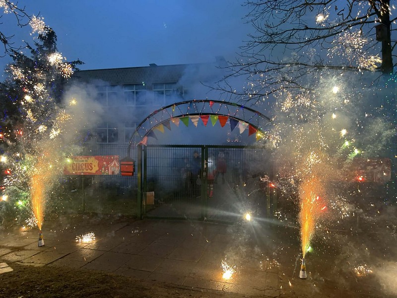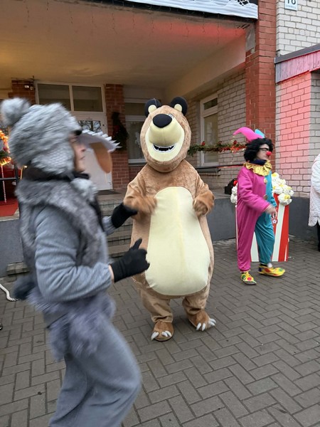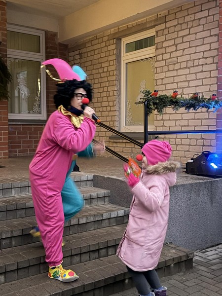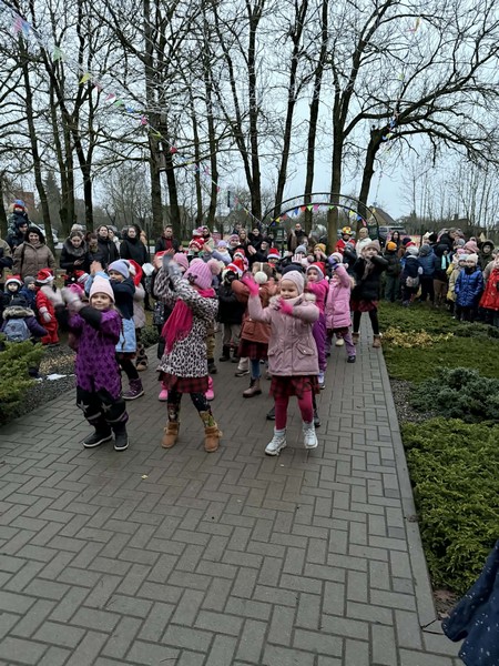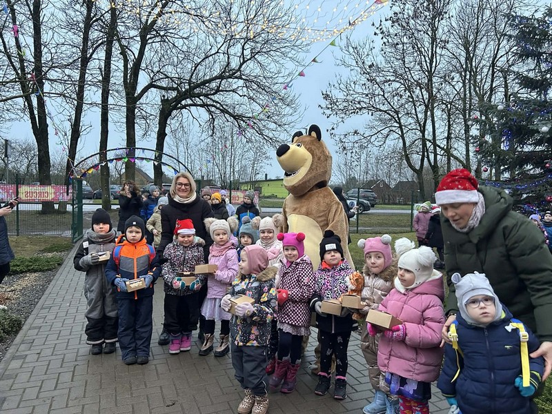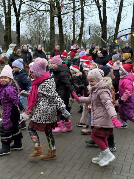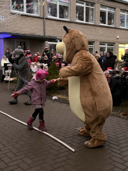 Mokyklos-darželio kiemą užpildė spalvingi, šmaikštūs personažai: cirko klounas Linksmuolis ir Vilkas Akrobatikas, paslaptingi iliuzionistai ir net mažieji artistai, kurie drąsiai rodė savo talentus. Skambant muzikai, kiekvienas galėjo pajusti, kad Kalėdų stebuklas gyvas čia pat – tarp mūsų.