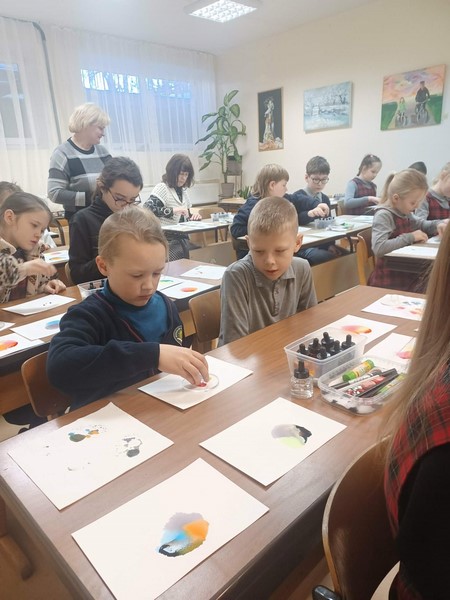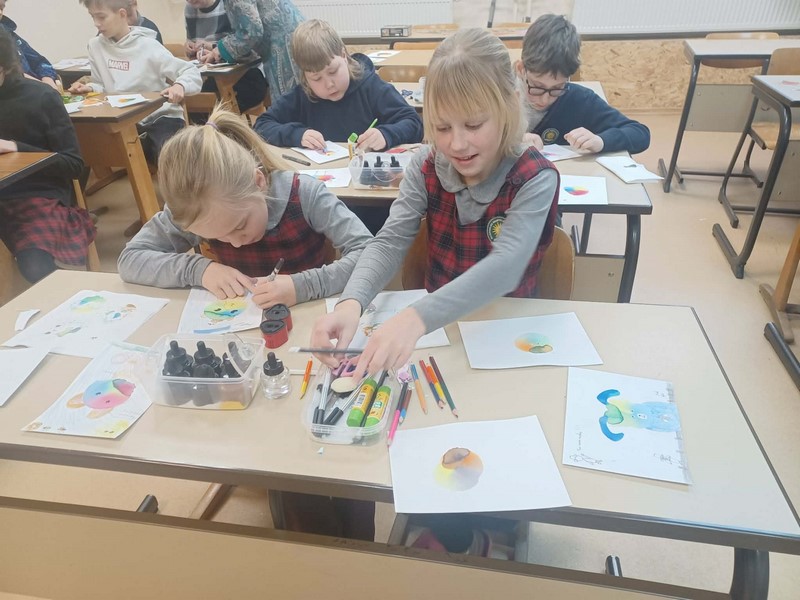Šaltą žiemos dieną nešina edukacinėmis priemonėmis: pieštukais, popieriumi, dažų rinkiniais Baisogalos mokyklos-darželio pradinukus aplankė dailininkė ir knygelių vaikams autorė Sigutė Ach. Linksmai, kūrybiškai ir puikiai nusiteikę vaikai turėjo galimybę išbandyti dailininkės Sigutės piešimo techniką. Puiki atmosfera, teigiamos emocijos tiesiog sklandė ore! Mažieji tapytojai kūrė vienetinius, originalius spalvingus piešinius. Draugiška, atvira ir šilta dailininkė skatino vaikus nebijoti eksperimentuoti, drąsiai reikšti mintis vaizdais. Kiekvienas pasinėrė į savo vaizdinių pasaulį – vieni matė žuvytę, kiti paršiuką, paukštelį.