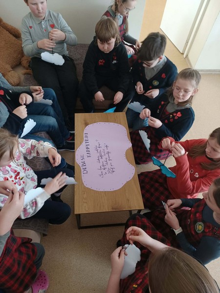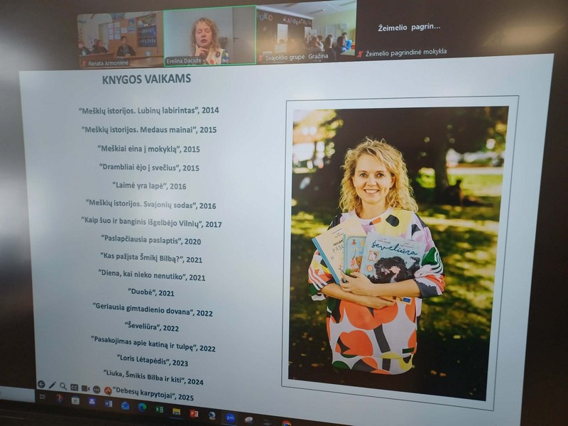 Vasario 24 dieną 4b klasės mokiniai dalyvavo jaukiame ir įkvepiančiame virtualiame susitikime su rašytoja ir poete Evelina Daciūte. Susitikimo metu viešnia pristatė savo knygas, pasakojo, kaip gimsta istorijos, iš kur atkeliauja veikėjai ir kaip kasdieniai stebėjimai, jausmai bei netikėti pokalbiai virsta kūriniais. Rašytoja atvirai dalijosi kūrybos paslaptimis ir kvietė vaikus drąsiai svajoti bei kurti. Didelio susidomėjimo sulaukė ir autorės skaitomi eilėraščiai – jie suskambo jautriai, žaismingai ir šiltai. Klausydamiesi vaikai galėjo pajusti tikrą žodžio muziką, o kai kurių akyse sužibo nuostaba ir šypsenos. Autorė bendravo labai nuoširdžiai, kantriai ir su meile atsakinėjo į gausius mokinių klausimus. Į šį ypatingą susitikimą ketvirtokai buvo pakviesti už ketverius metus dalyvavimo projekte „Kartu paskaitykime knygelę”. Tai gražus įvertinimas už jų draugystę su knyga ir skaitymo džiaugsmą. Šiemet mokiniai skaitė E. Daciūtės knygą „Debesų karpytojai” ne tik patys, bet ir mažiesiems bičiuliams iš „Drugelių“ grupės. Skaitymas virto bendryste – vyresnieji tapo mažųjų mokytojais ir įkvėpėjais. Įkvėpti knygos, vaikai dalyvavo įvairiose kūrybinėse veiklose: diskutavo, kūrė, piešė ir dalijosi savo mintimis. Šis susitikimas dar kartą priminė, kad knygos suartina, augina vaizduotę ir leidžia patikėti, jog kiekvienas galime būti savo istorijos kūrėju.