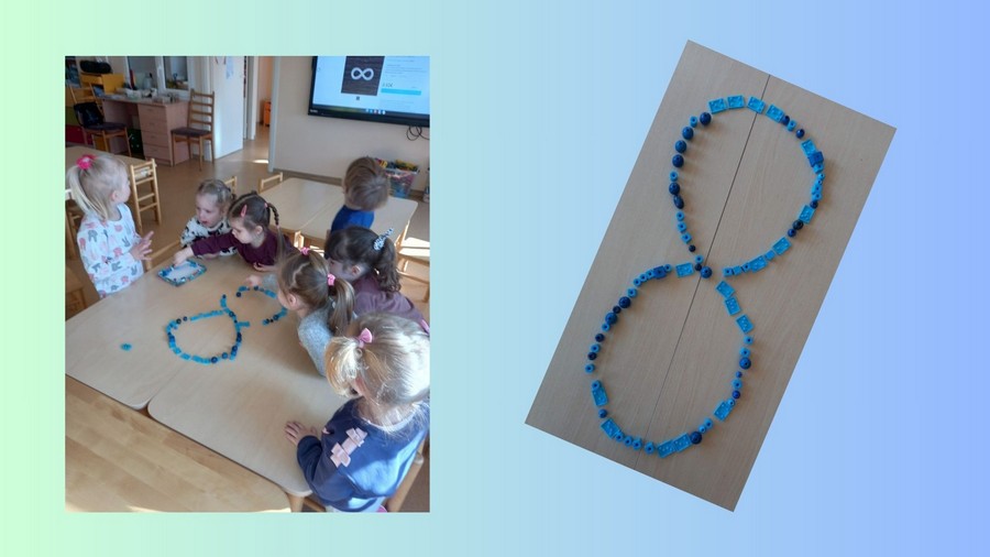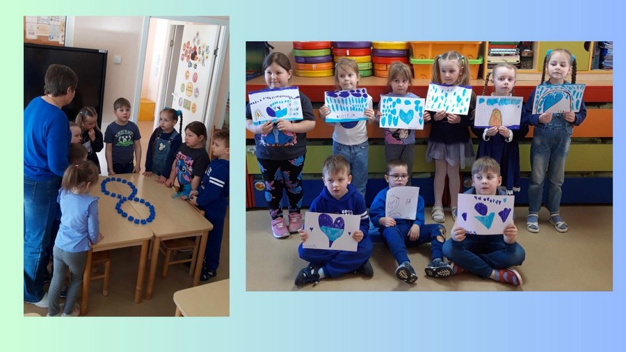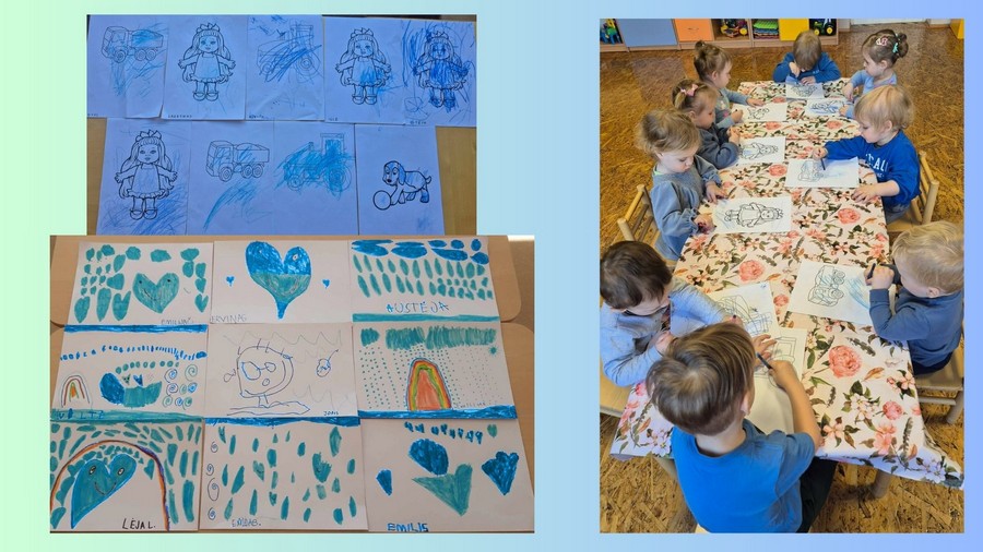 Vaikai aktyviai įsitraukė į įvairias prasmingas veiklas. Kūrybinių užsiėmimų metu jie piešė mėlyna spalva, taip išreikšdami savo emocijas, mintis ir suvokimą apie draugystę bei priėmimą. Taip pat kartu dėliojome begalybės ženklą – simbolį, atspindintį įvairovę, unikalumą ir begalinę galimybių įvairovę kiekviename iš mūsų.