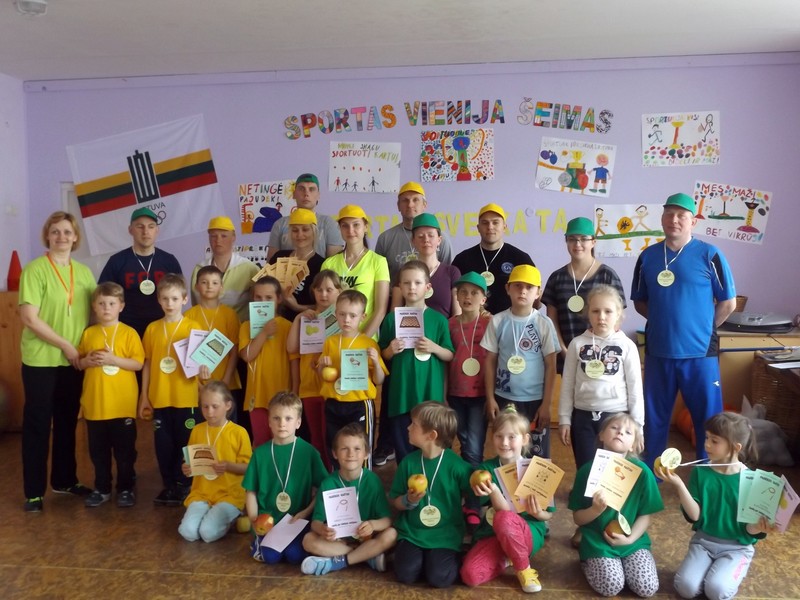 Mokytoja Elena Kalvaitienė organizavo puikią 2b klasės šeimos sporto šventę. Susirinko gausus būrys tėvelių, broliukų ir sesyčių. Šventė vyko pagal visus sportinių renginių reikalavimus: išsirikiavimas, išsiskaičiavimas, komandų kapitonų išrinkimas, bendra mankšta.